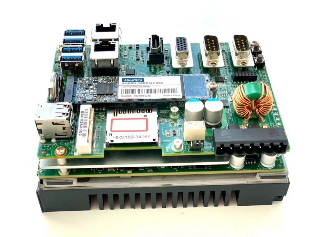 重点说下第3层的电路板,主要设计有CPU和内存条、输入输出控制芯片、PCI-E扩展接口、EtherCAT接口等四大部分。先谈控制器的最核心部分,也就是CPU,位于电路板中间位置。根据官方资料,具体可以根据实际应用场景选择英特尔赛扬、i5、i7等系列CPU,实测用的这台WISE-5580搭载的是英特尔赛扬3955U,这是一款双核双线程的处理器。通过分核分系统技术,就可以在第1个核运行可编程逻辑控制器(CODESYS),第2个核用来运行边缘计算(Windows),这种独立核心运行的设计,同时保证Windows开放性与CODESYS实时性,即使Windows系统发生宕机也不会影响PLC的运行。这也是边缘控制器最大的特点之一。
